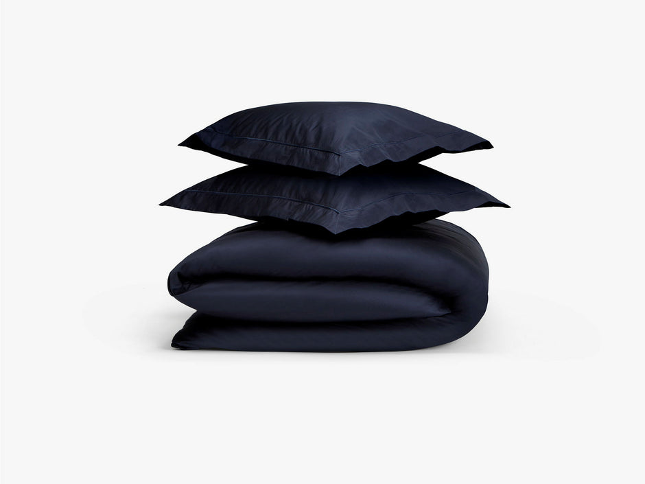 Havsbris Duvet Cover Set, Double - Dark BlueExclusive cotton satin duvet cover set for a double bed with two pillow cases, 240x220 cm. Made in pima cotton with a thread count of over 500 threads per inch. Oeko-Tex® Standard 100 certified. Available in several colours.