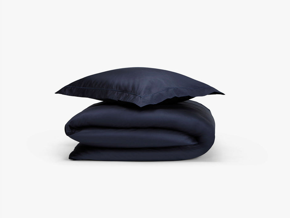 Havsbris Duvet Cover Set, Single - Dark BlueExclusive duvet cover and pillow case in cotton satin, 150x210 cm. Made in pima cotton with a thread count of over 500 threads per inch. Oeko-Tex® Standard 100 certified. Available in several colours. -