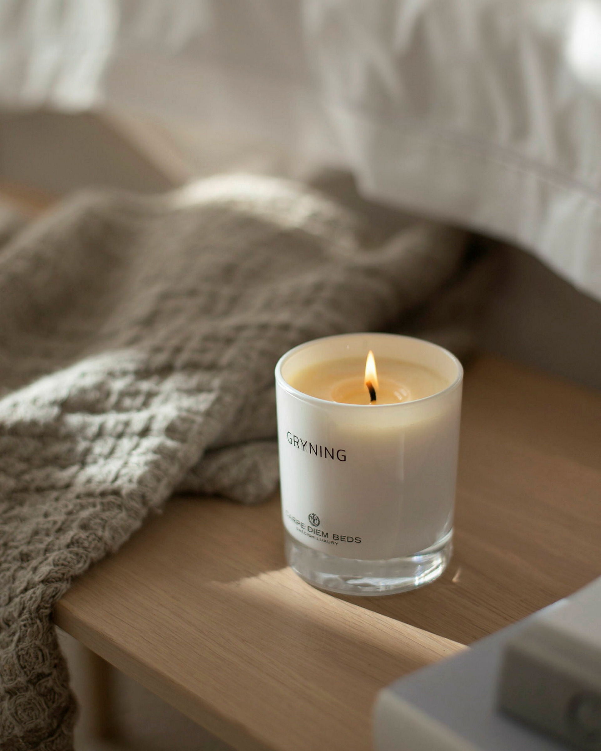 Luxurious hand-made scented candle in a glass holder. This organic soy wax scented candle has fragrance notes of ripe lemons, bergamot, magnolia blossom and orchid. Weight: 260 g.