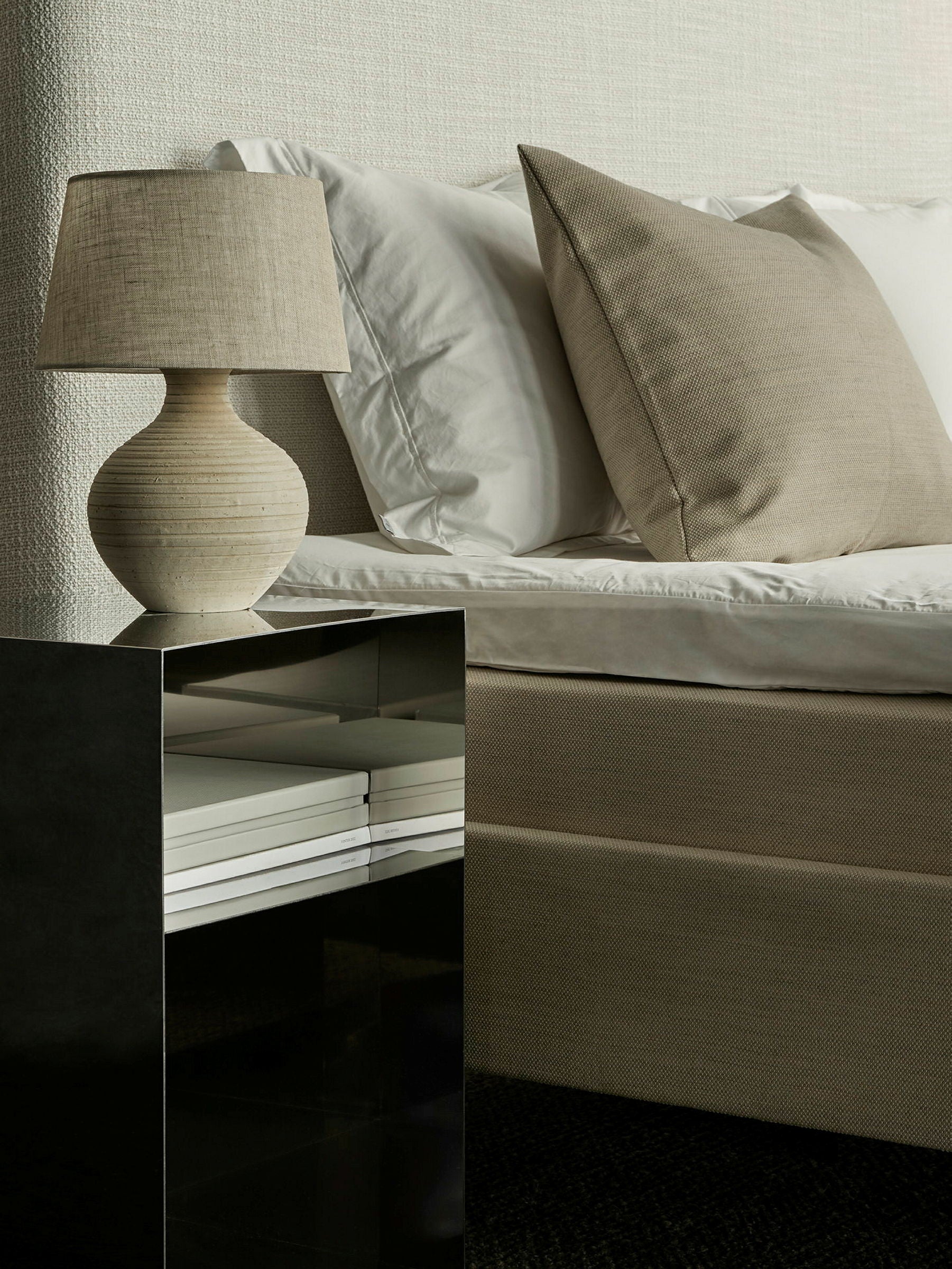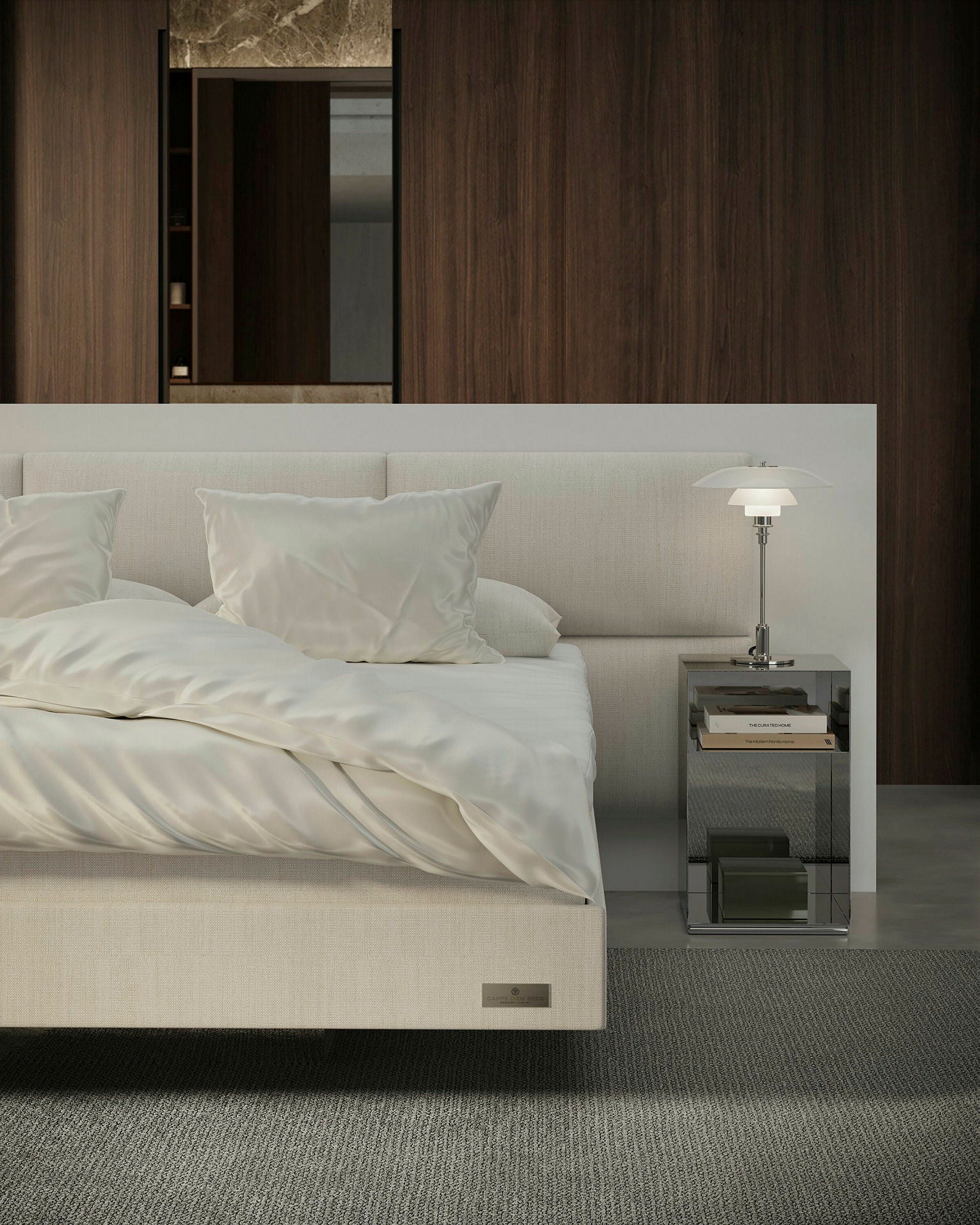 Hällsö Upholstery, a part of The Iconic Collection, seamlessly complements a modern interior style, adding a touch of sophistication and contemporary flair to the bedroom.
