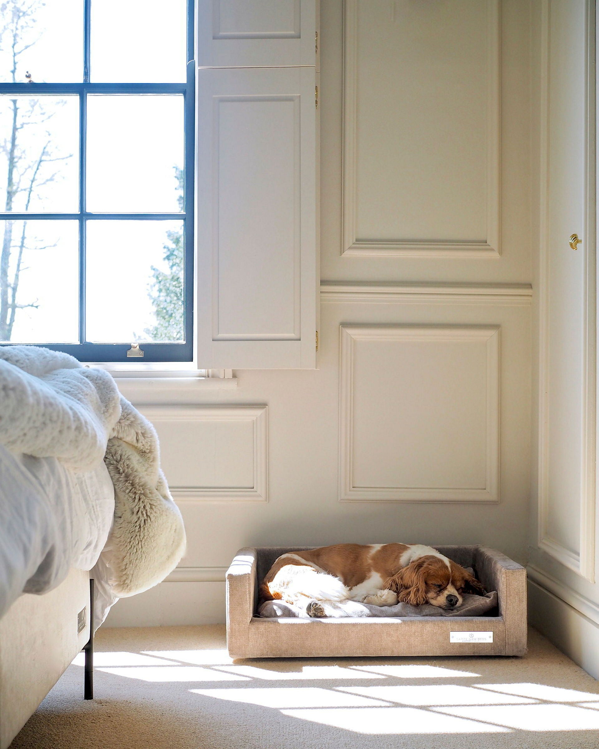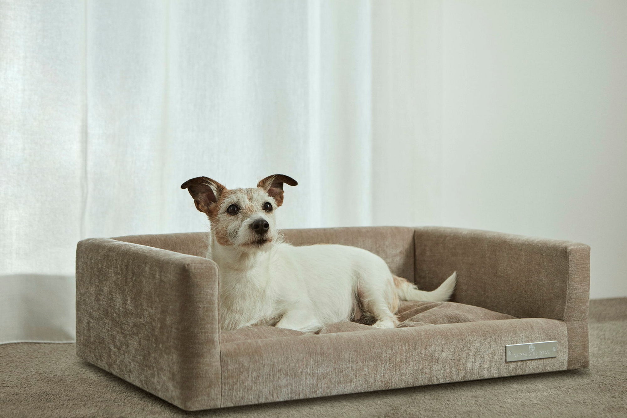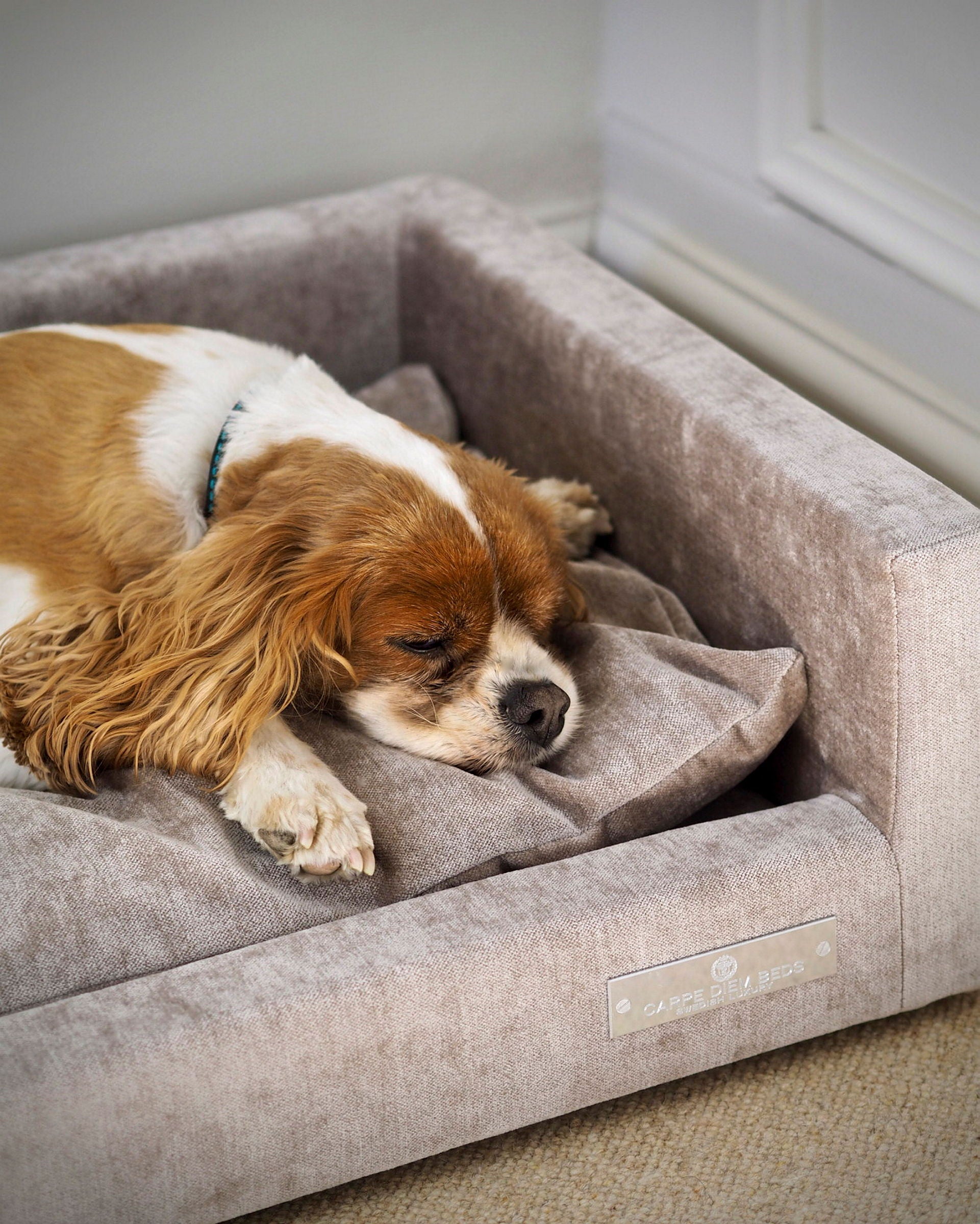 A high-quality, luxurious dog bed available in two sizes for smaller or larger dogs. Choose from 44 different fabrics and colours. Handmade in Sweden.