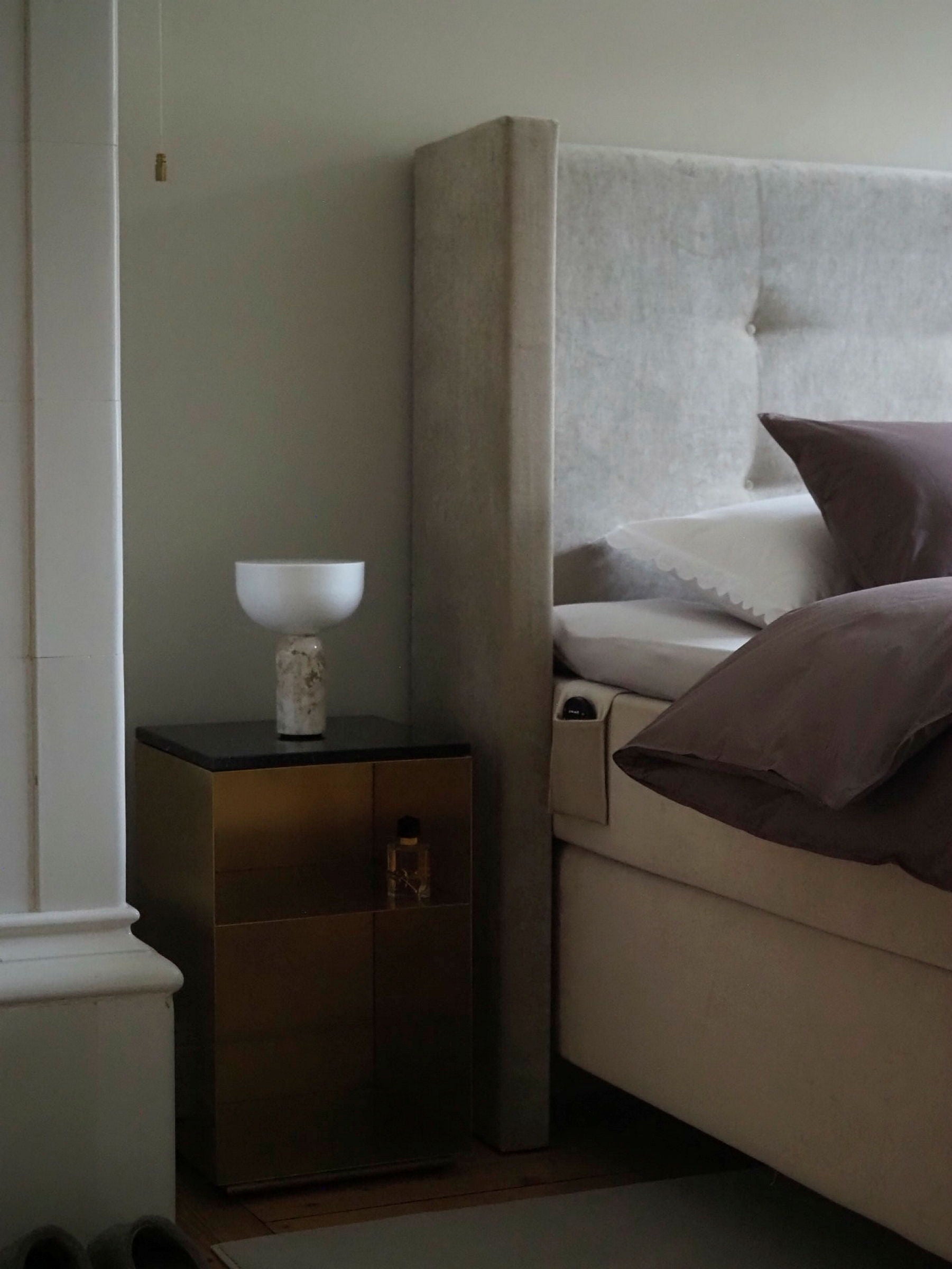 A grand padded headboard with sound-absorbing side panels and decorative buttons on the back panel. Available in two sizes. Choose from 44 exclusive fabrics in different colours. The Low Tornö headboard is hand-made in Sweden.