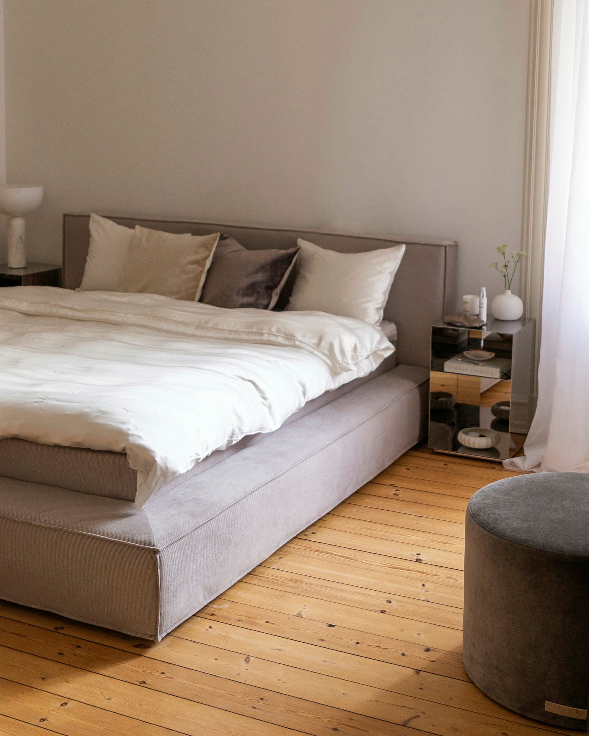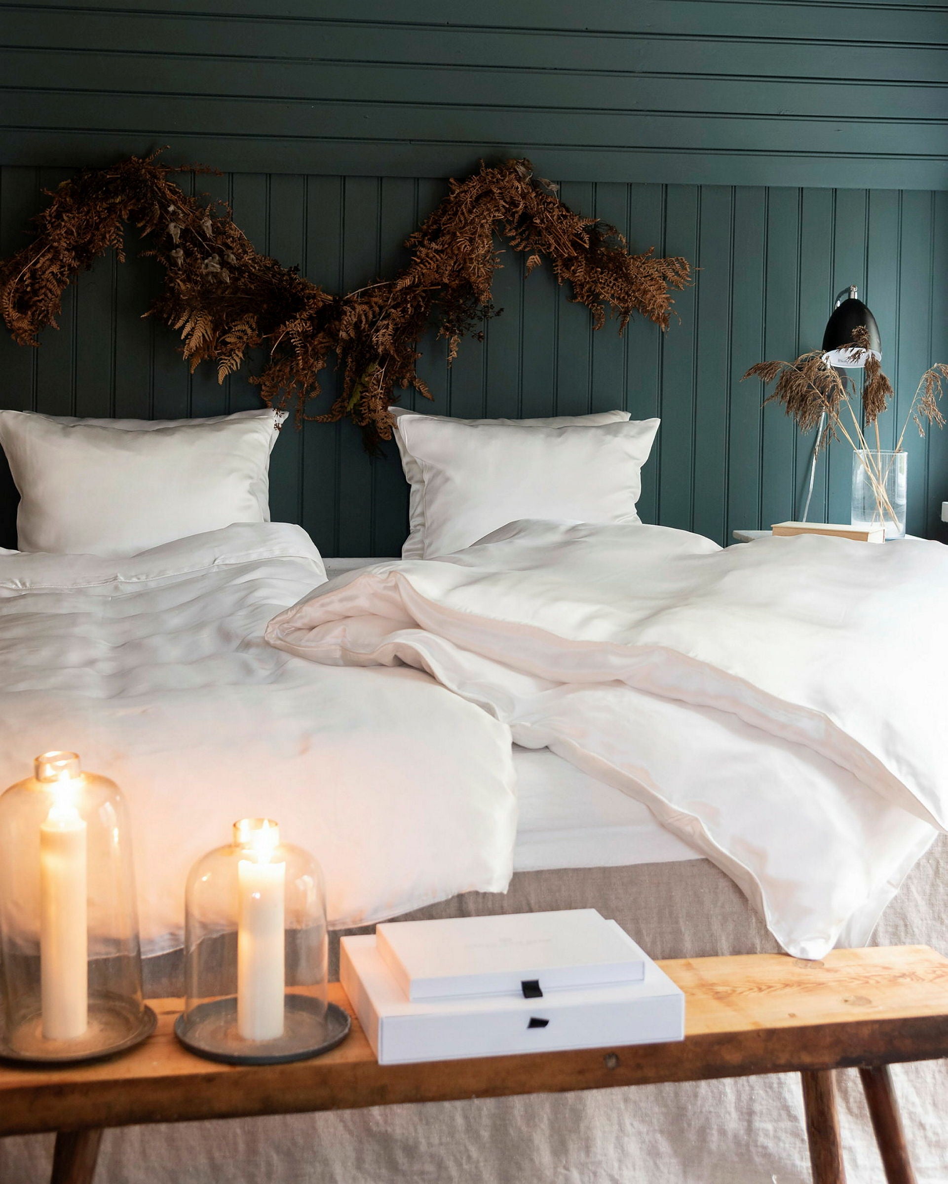 Vindstilla is a luxurious duvet cover crafted from 100% 19 momme Mulberry silk. Exceptionally soft, breathable, and naturally temperature-regulating, the duvet cover creates a smooth, refined sleep environment. Available for single and double beds in Warm White. Oeko-Tex® Standard 100 certified.
